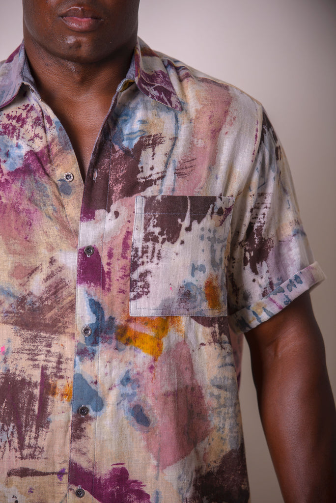 Button placket, cuff, and neckline interiors in contrasting tight weave cotton