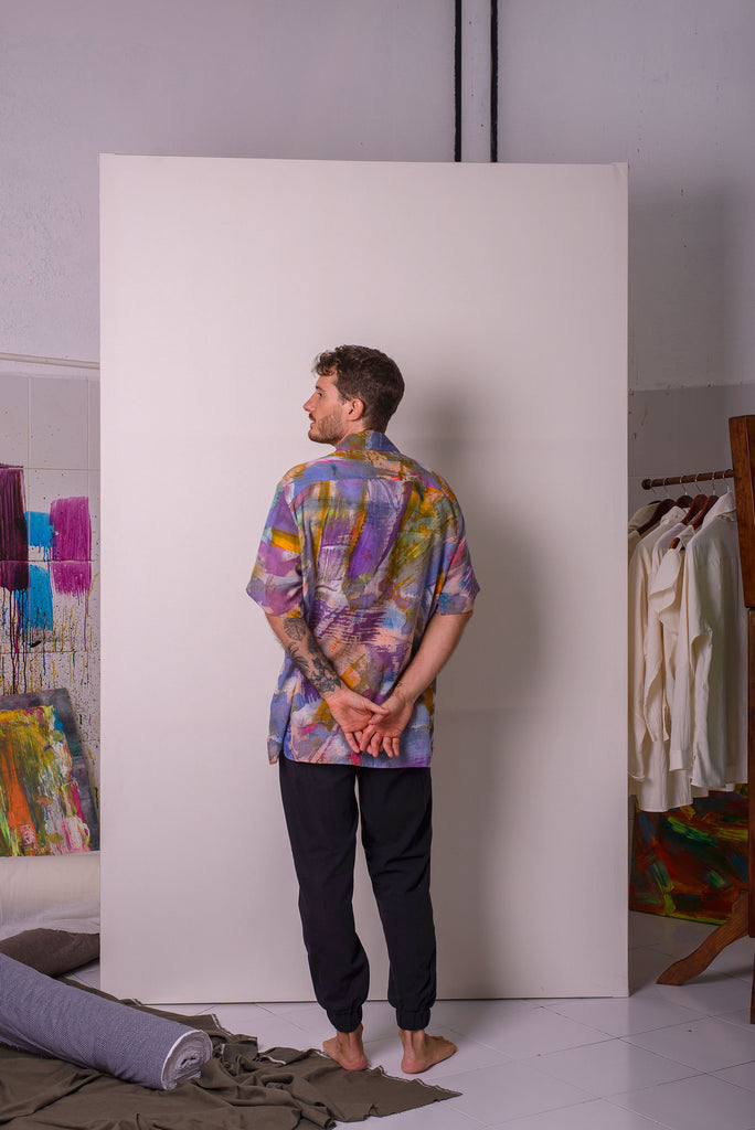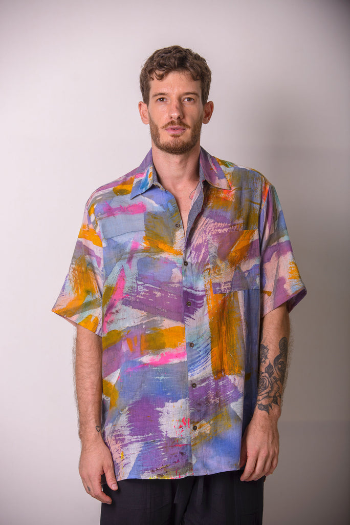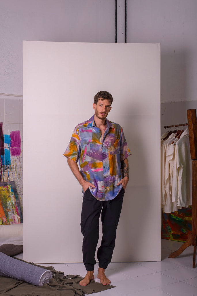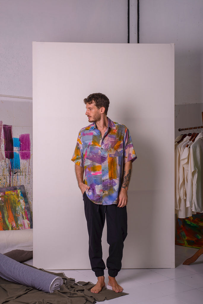 Button placket, cuff, and neckline interiors in contrasting tight weave cotton