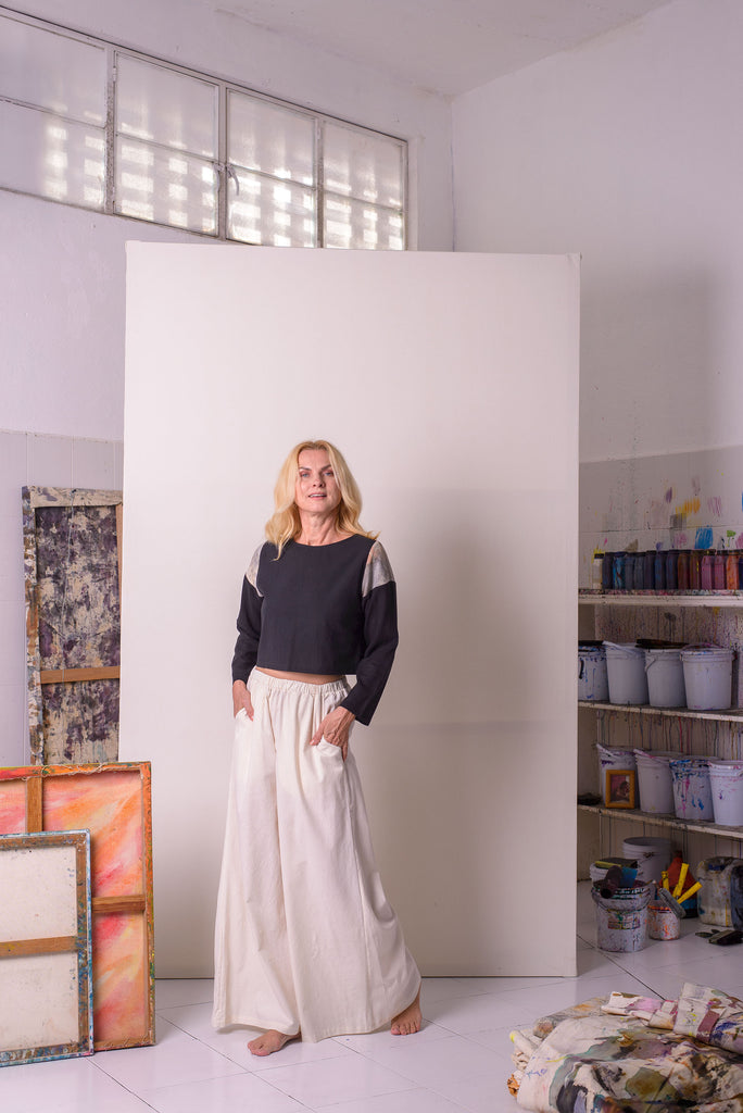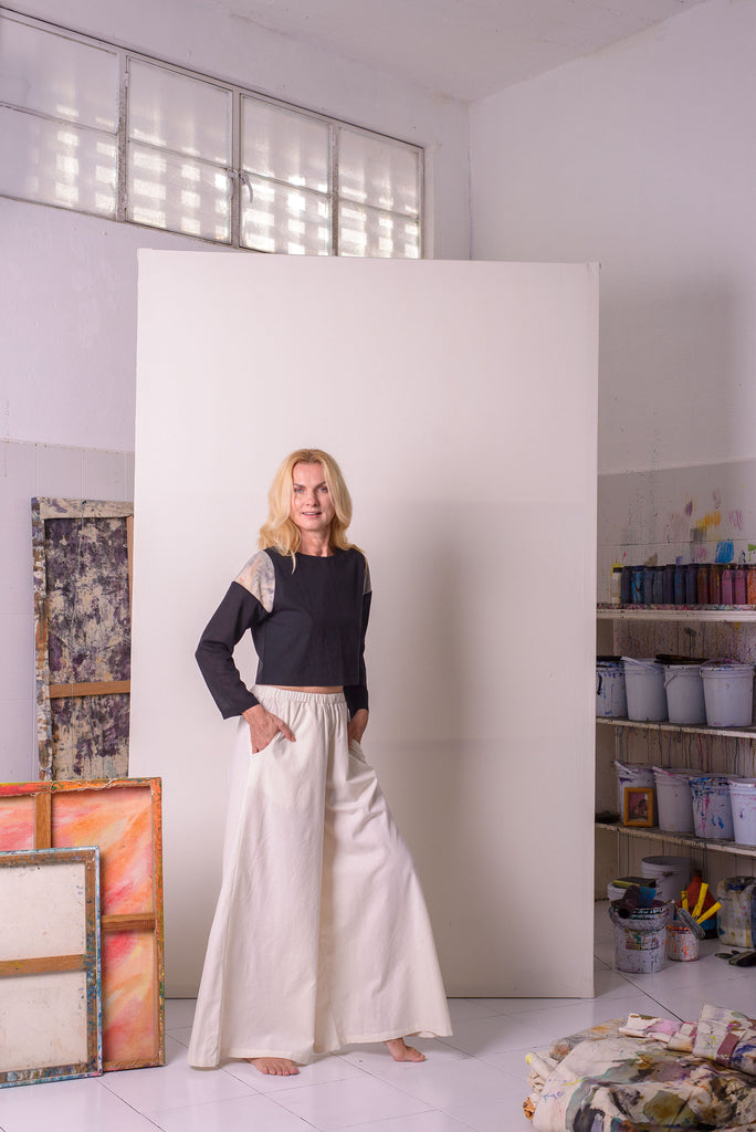 Hand painted jersey knit on shoulders