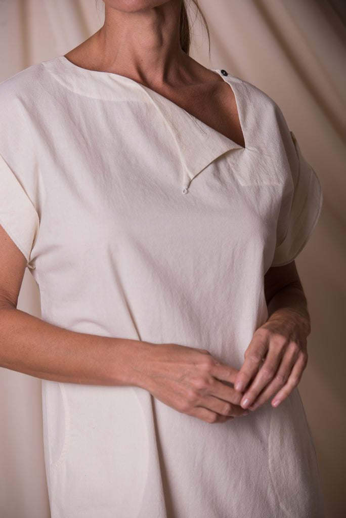 Rounded neckline with a slit on the side