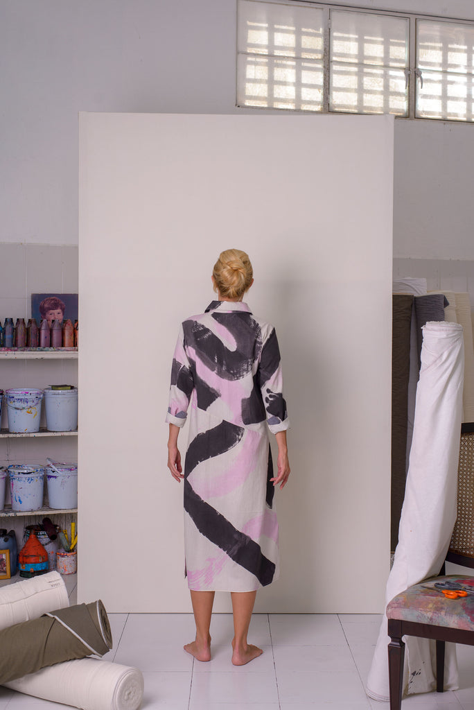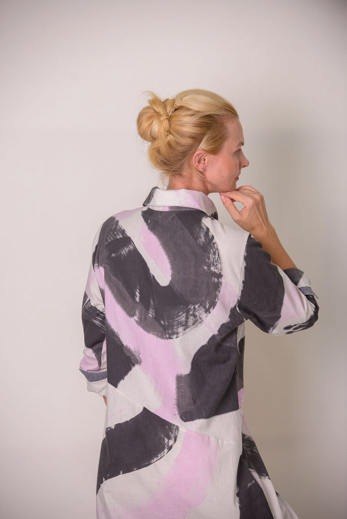 Button placket, cuff and neckline interiors in contrasting tighter weave